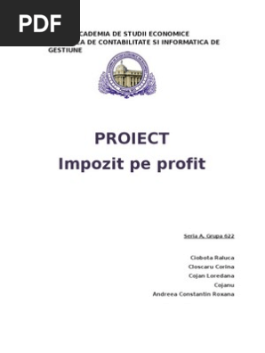 vizitati articolul complet aici : https://www.aparaturafiscala.ro/content/347-impozitul-pe-profit-ce-este-legislatie-cum-se-calculeaza-cand-si-unde-se-plateste Realizam revizuri periodice ale tratamentului aplicat diverselor tipuri de venituri si cheltuieli si oferim suport in interpretarea articolelor de lege pentru a identifica analiza si revizuirea modalitatii de calcul pentru impozitul pe profit, atat trimestrial, cat si la incheierea exercitiului financiar. Acest referat descrie impozitul pe profit. A doua masina o foloseste atat in interes personal, cat si in scopul desfasurarii activitatilor economice.