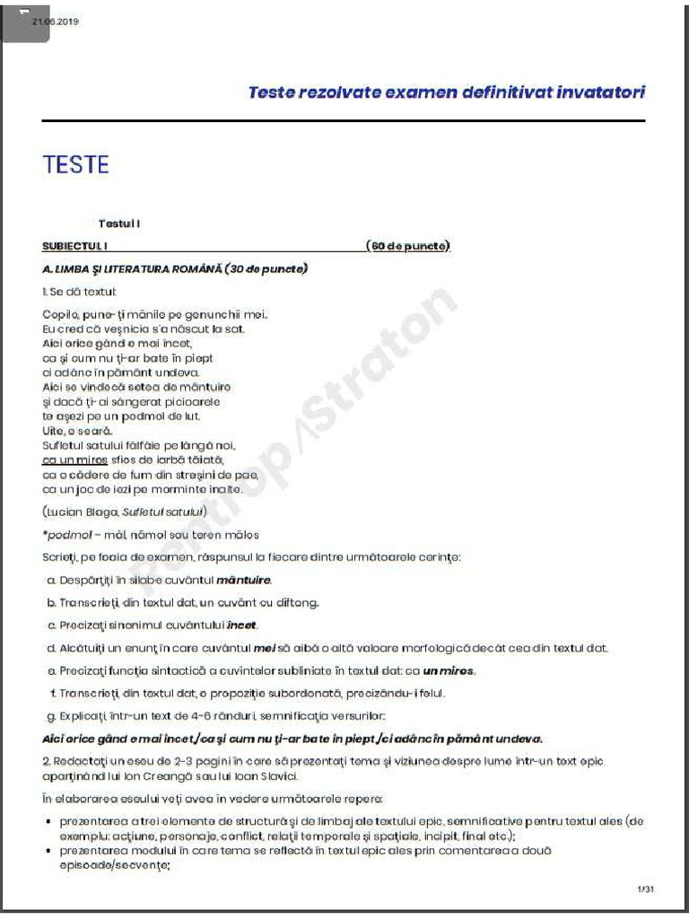 Subiecte Definitivat 2018 Invatatori
